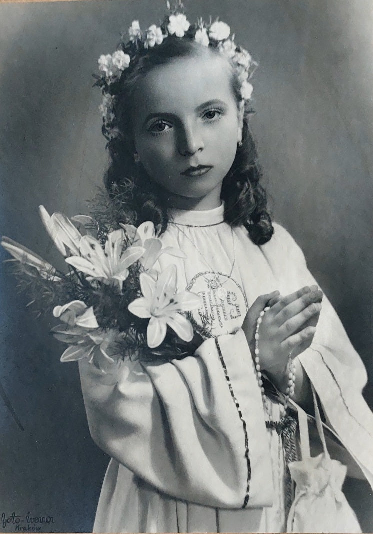 Zwart-Wit foto, genomen in Krakow- Polen. Een jong meisje wordt op paasmaandag op de foto gezet. Omstreeks jaren vijftig van de vorige eeuw. Foto is bevestigd op karton!