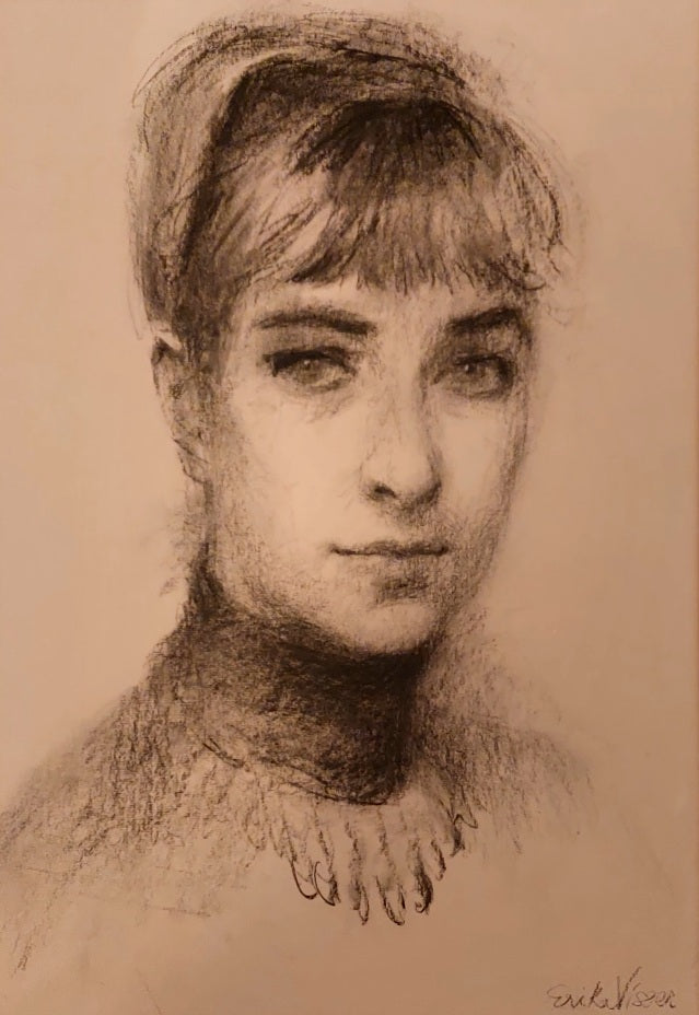 Houtskooltekening op papier, gesigneerd rechts onder.