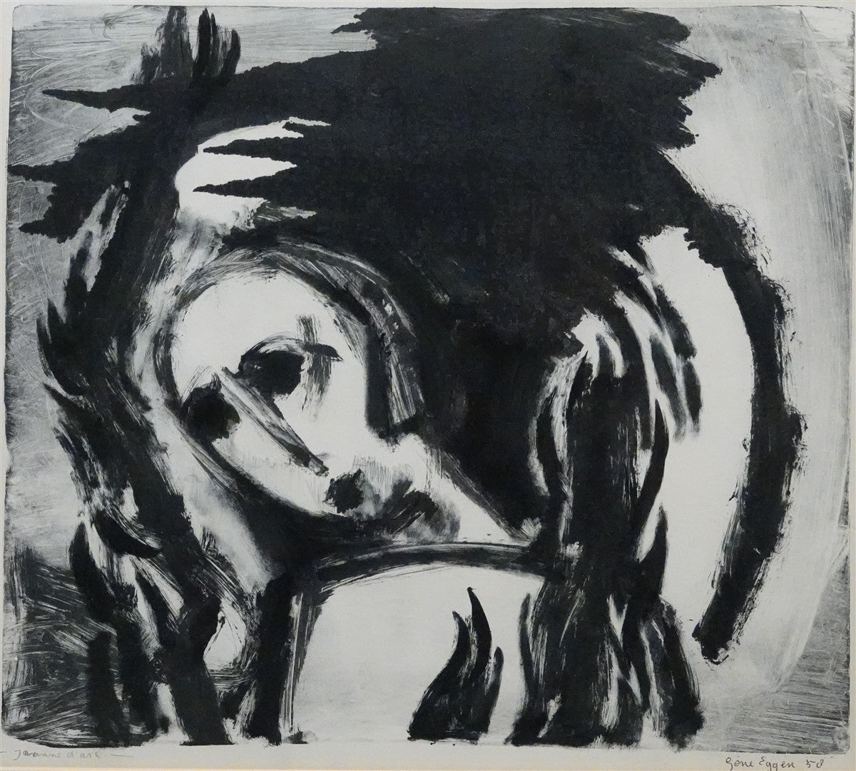 Litho, gesigneerd, gedateerd '58 en getiteld 'Jeanne d'Arc'.