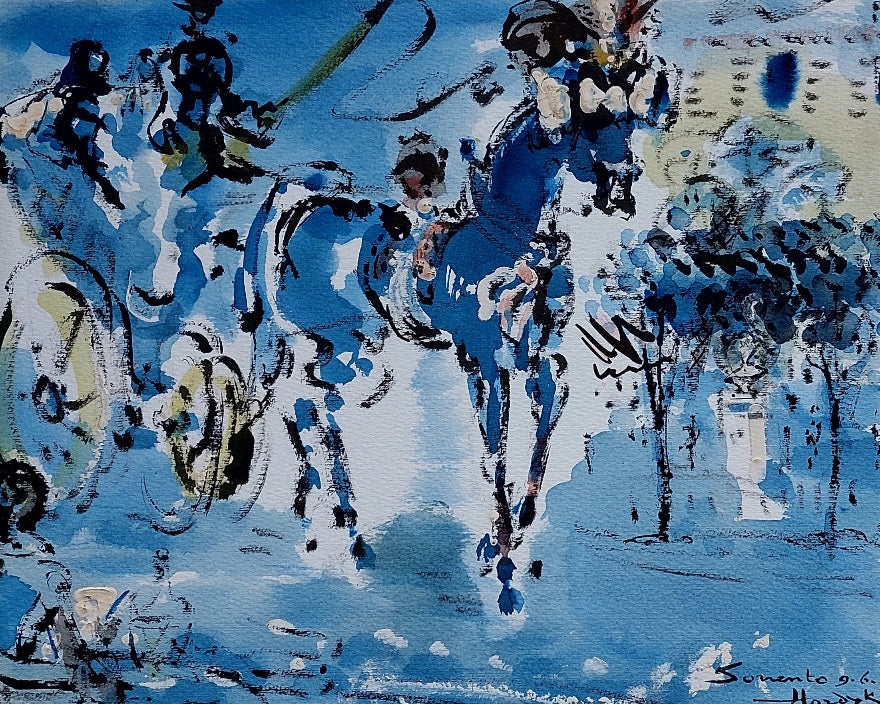 Gouache/aquarel, gesigneerd en gedateerd 'Sorento '56 Afmetingen: 33 cm x 26 cm. Inclusief lijst: 46 cm x 54 cm.