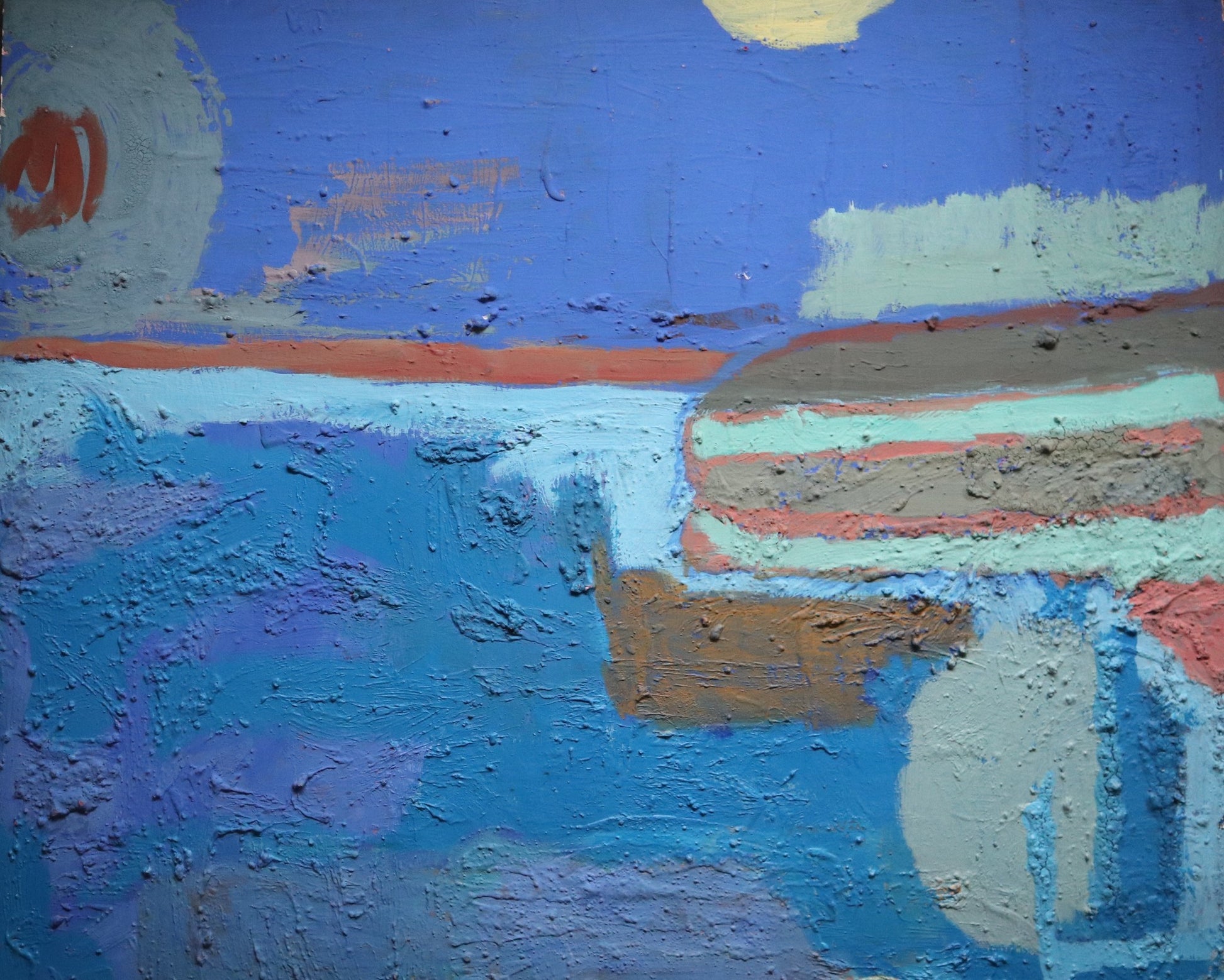 Isabel Lopez Mora (*1953) Spanje-Madrid. Hedendaagse Spaanse School. Schildert in een helder palet en verwerkt materie en pigmenten waardoor het landschappelijke wordt versterkt.