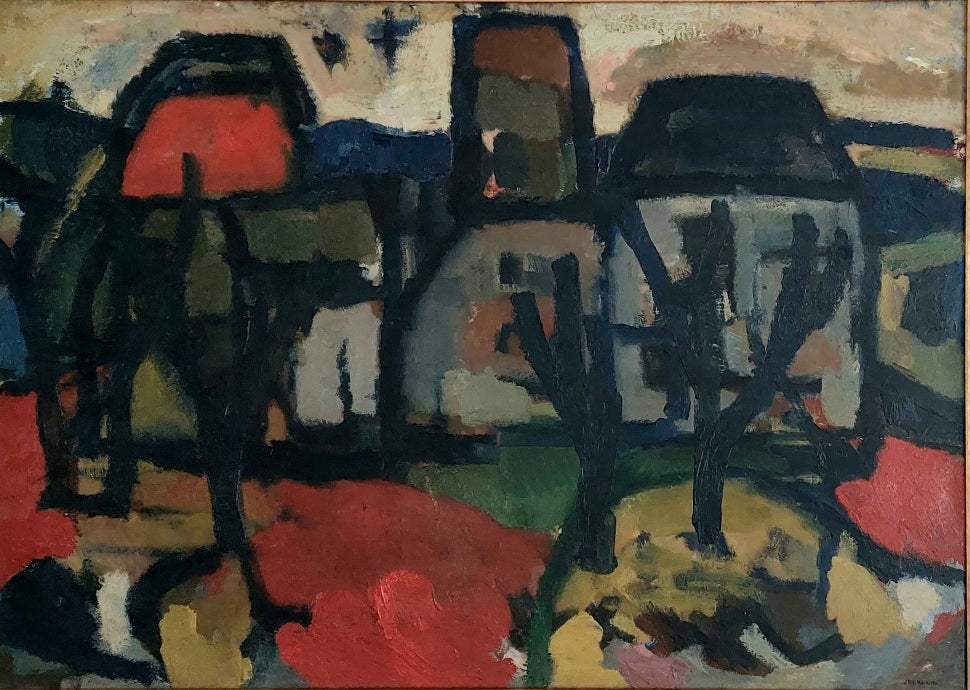Jan Kagie 1901-1991. Groeide op in Drenthe, hij kreeg schilderlessen van zijn vader. Schilderde aanvankelijk figuratieve landschappen en stillevens Hij raakte bevriend met Anton Heyboer, ze maakten samen reizen naar Frankrijk. In 1949 verruilde Kagie Drenthe voor Amsterdam en veranderde zijn stijl van figuratief in abstractie. Het hier getoonde schilderij is afkomstig uit de Rijkscollectie.