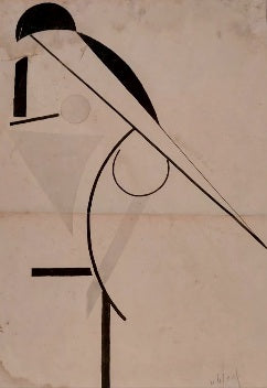 Gouache, gesigneerd rechts onder. Geabstraheerde vogel. Uiterst zeldzame gouache, circa 1925/26, beschadigd maar een wonder dat ik hem gevonden heb.