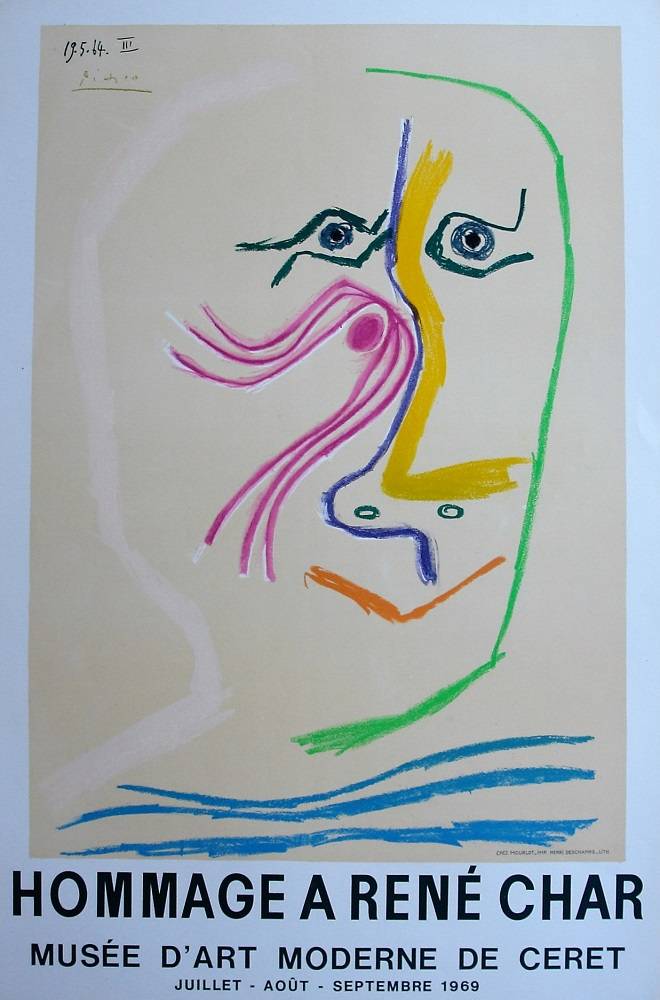 Lithografie, Mourlot Henri Deschamps lithograaf: Hommage a René Char Afmetingen: 78,5 cm x 52,5 cm.
