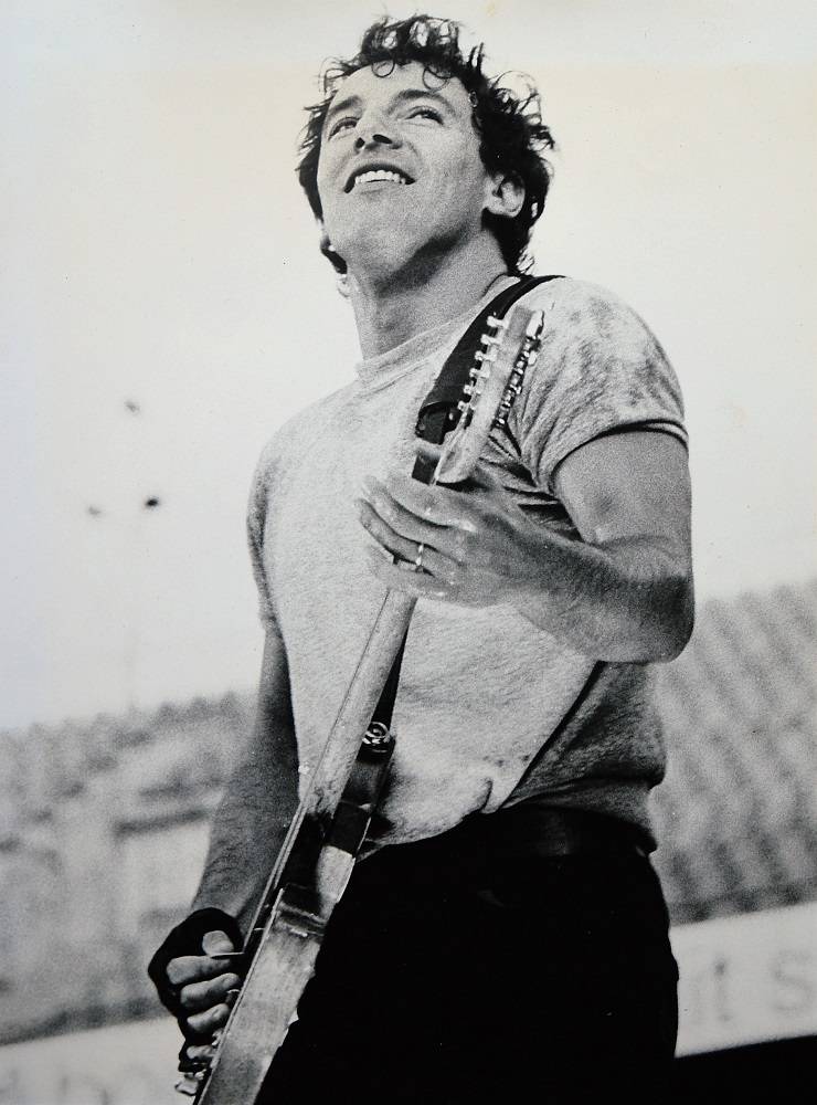 Onbekende fotograaf, Bruce Springsteen in concert, Rotterdam 1985. Maten: 40 cm x 30 cm. Ingelijst.