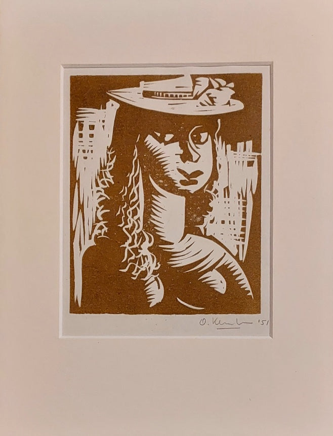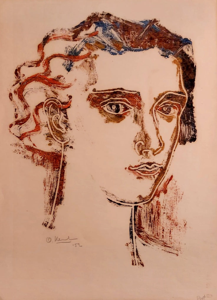 Mono-type, gesigneerd en gedateerd 1952. Hierbij ook een houtsnede van zijn hand.