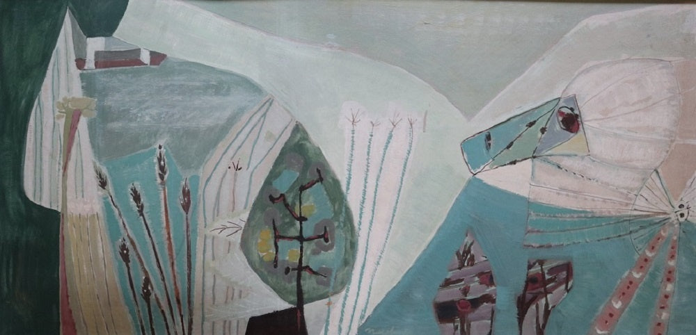 Tempera op board, gesigneerd en gedateerd 1967 midden onder. 'The beauty of nature'