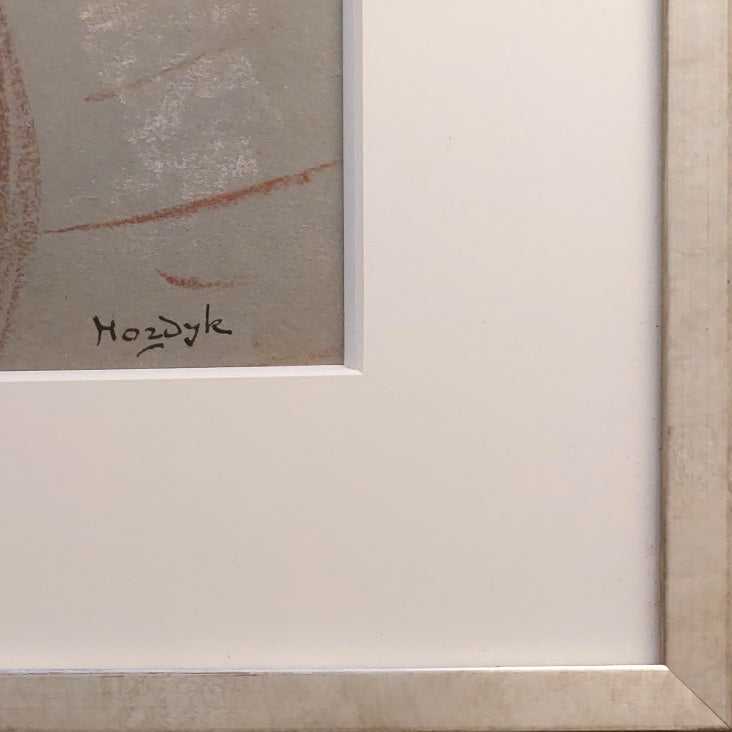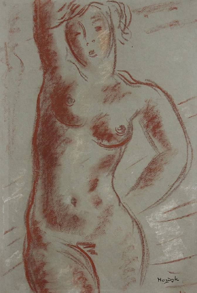 Tekening in rood en wit krijt. Stand analoge naakt
