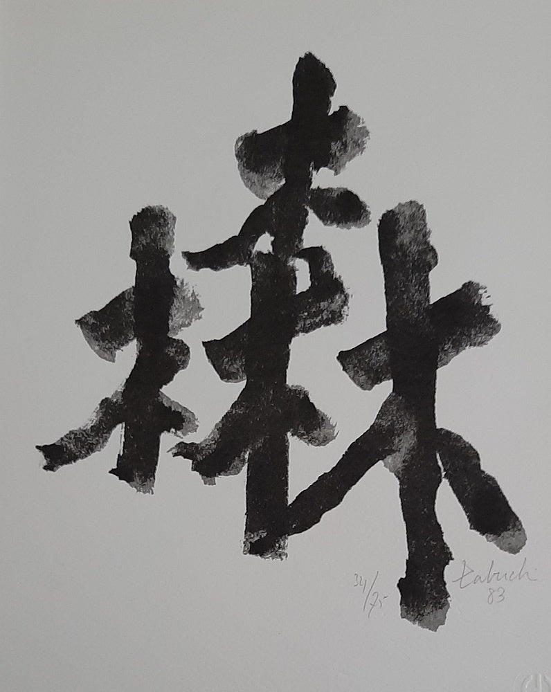 Yasse Tabuchi (1921-2009) Geboren in Tokyo, Japan. Studeerde kunstgeschiedenis. Hij ging na zijn studie in 1951 naar Parijs waar hij al snel naam maakte met zijn abstracte werken. Hij sloot vriendschappen met andere Japanse kunstenaars in Parijs, maar ook met enkele leden van de COBRA beweging.